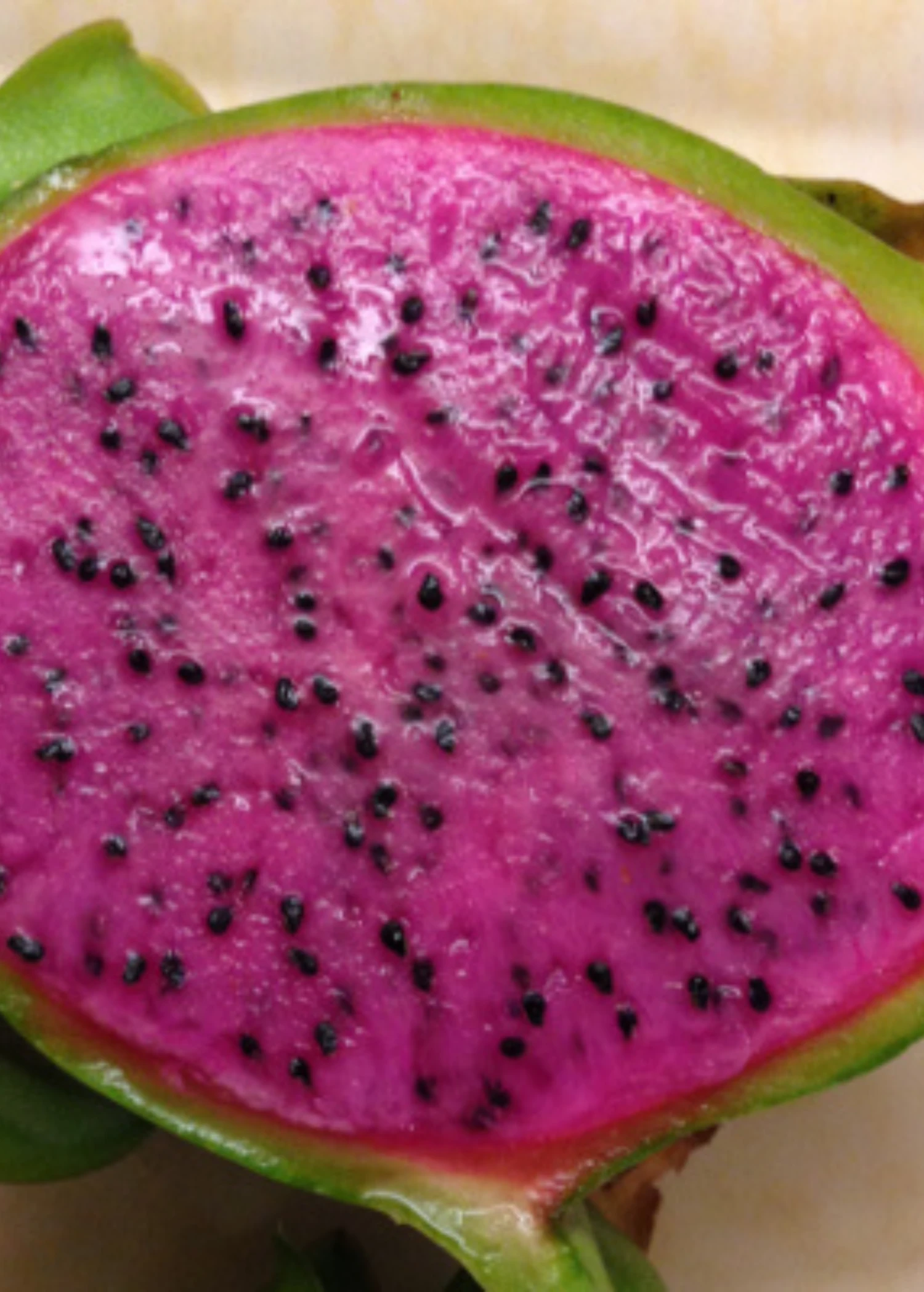 ‘Edgar’s baby’ dragon fruit is a new hybrid variety created by Edgar Valdiva, a fruit cultivator who felt this particular variety of dragon fruit held a special quality worthy of his namesake. A member of the Cactaceae family, it is a fruit cactus vine related to the