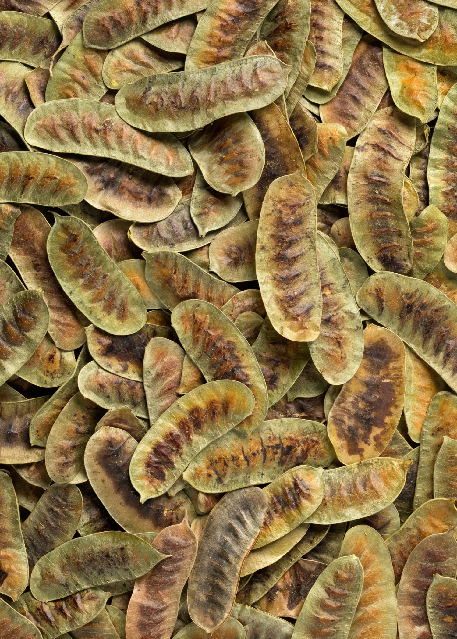 . Hefty compound leaves house dainty, yellow flower clusters and seed pods.